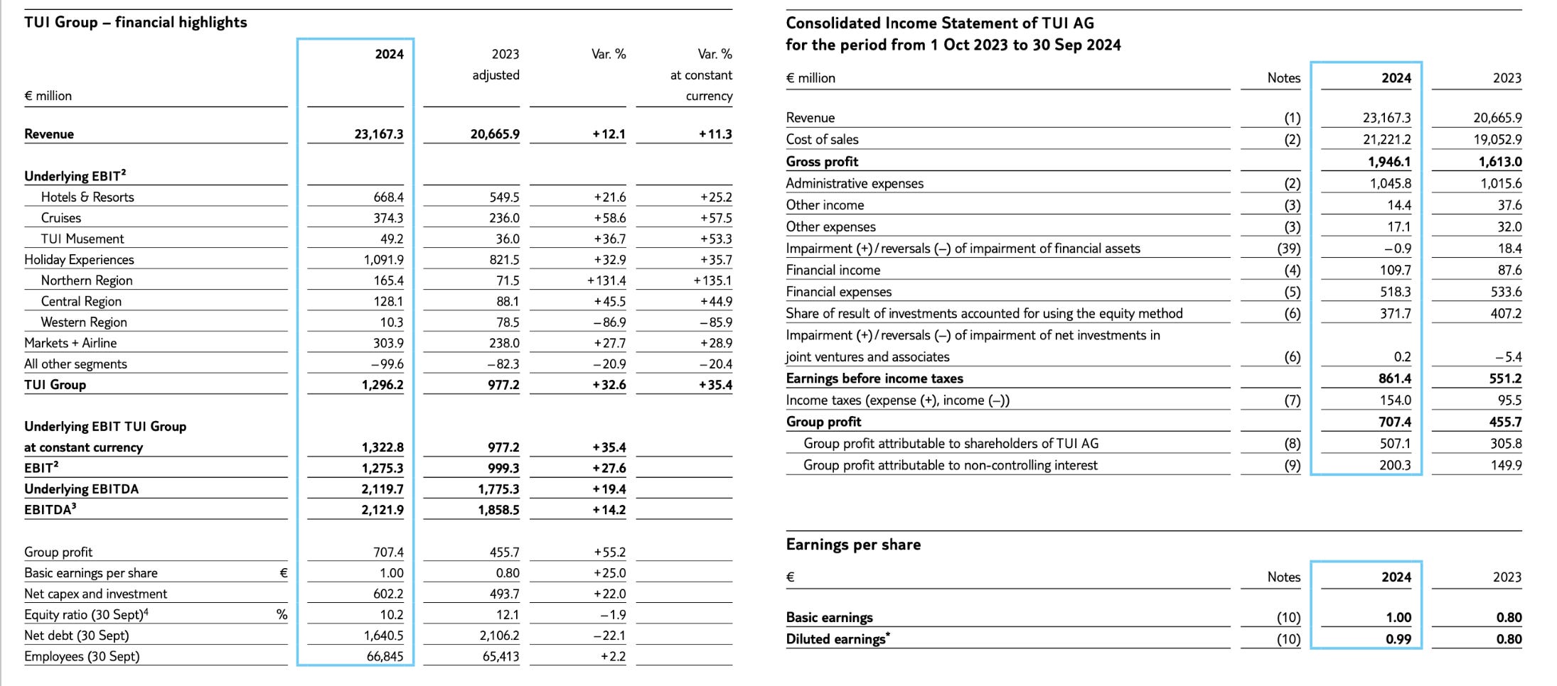 Right at the bottom, under “Group profit,” you can see that €200 million of the €700 million total profit doesn’t belong to TUI, but to other shareholders. This only shows up at the net income level—it’s not reflected in TUI’s reported EBIT.