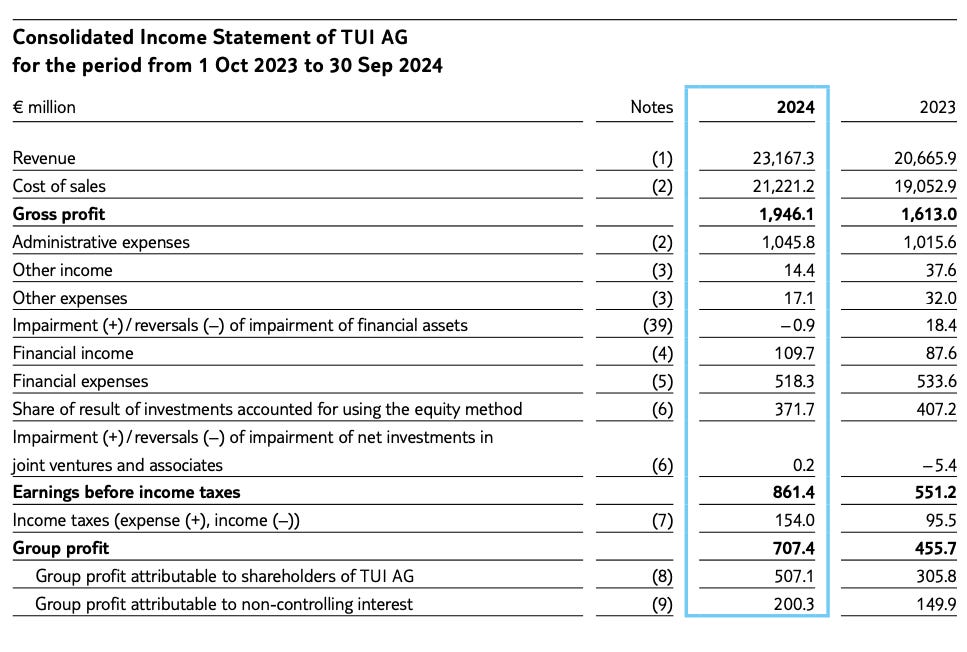 Take a look at TUI’s income statement: