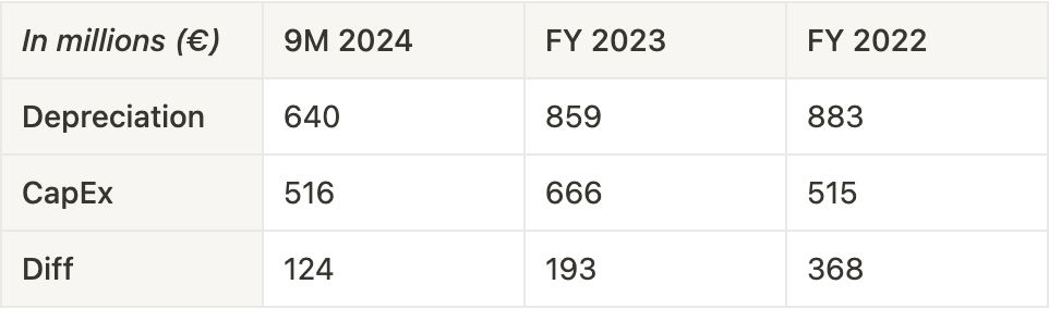 EBIT might actually be understated. TUI’s depreciation expense consistently exceeds its maintenance CapEx, meaning the accounting charge to keep hotels, airplanes, ships, etc. running is higher than the actual cash outflow.