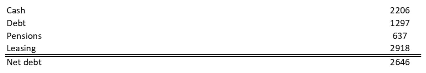 In the original analysis, net debt was calculated as financial debt minus cash, unfunded pension obligations and lease liabilities—resulting in around €2.7 billion.