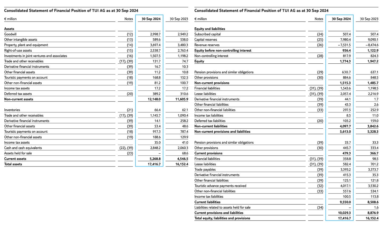 To figure out why TUI’s equity declined last year despite reporting a net income of about €700 million (of which €500 million was attributable to TUI shareholders), I had to dig into hedge accounting—which doesn’t show up directly in the P&L but still caused an accounting loss of nearly €600 million.